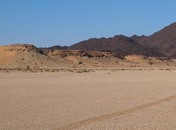 It will be more than two weeks later, when returning north, following fast tracks not far away from where we are standing now— the tracks that remain from the heyday of the Paris-Dakar rally—that we will meet a knowledgeable elderly Saharawi who would speak basic French and so we will learn about the names of the areas we drove through previously. The stony Hamada is called Imrikly; the treacherous sebha is known as el Mohor; and the long but narrow field of dunes bears the name Ifrafir. The vast sandy plain that now spreads before us is part of the great Oued El Khot, a very important dry stream that stretches far to the east, over the inglorious Moroccan version of the Berlin Wall, crossing the Polisario Free Zone and finally vanishing in the sandy sameness of the Mauritanian Empty Quarter, possibly the biggest sand pool on Earth.