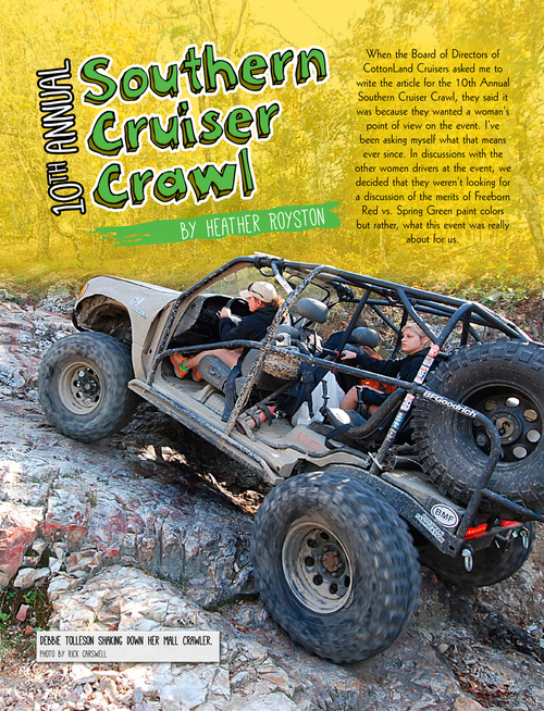 When the Board of Directors of CottonLand Cruisers asked me to write the article for the 10th Annual Southern Cruiser Crawl, they said it was because they wanted a woman’s point of view on the event. I’ve been asking myself what that means ever since. In discussions with the other women drivers at the event, we decided that they weren’t looking for a discussion of the merits of Freeborn Red vs. Spring Green paint colors but rather, what this event was really about for us.